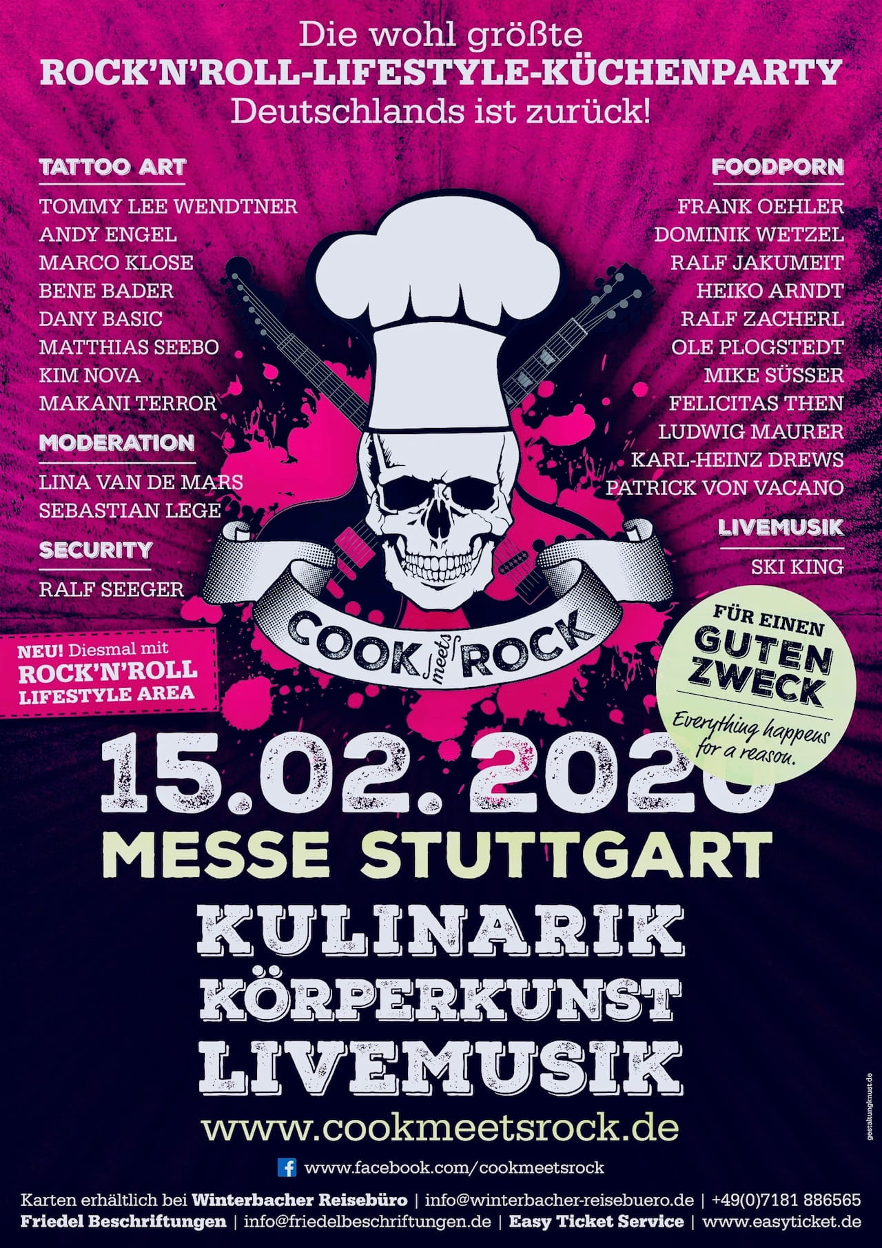 Endlich schmeckt und rockt es wieder – DAS Charity-Spektakel ist zurück: KULINARIK, KÖRPERKUNST, LIVEMUSIK bei der wohl größten Rock´n´Roll-Lifestyle-Küchenparty Deutschlands: COOKmeetsROCK!